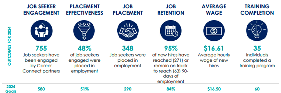 Career Connect is a unified, holistic workforce development model designed to meet job seekers where they are and help them move forward with the support of trusted partners. Career Connect equips individuals with the tools they need to successfully enter or reenter the workforce through training, guidance, coaching, and resources.
